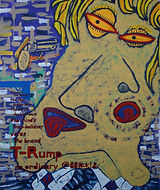 Finally, the political world started to get really ugly. Prior to the GOP's presidential nomination, I painted Ode to T-Rump in 2016. This painting portrayed the increased lies, hatred and lack of integrity that was dominating American presidential politics. This formed the third leg in this BLANK Series. I expected this leg to wither; but it grew like a cancer.